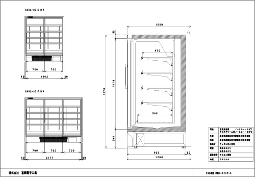 ケース幅:1462mm(2枚扉) 2177mm(3枚扉)