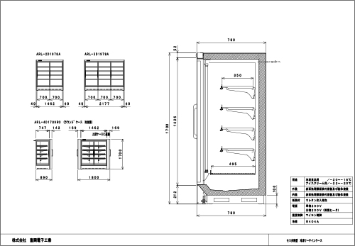 アイスクリーム・冷凍食品陳列用途、棚4段、ケース高さ1700mmの冷凍機別置型 セミ多段型リーチインケースです。