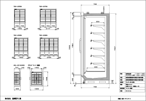 アイスクリーム・冷凍食品陳列用途、棚6段、ケース高さ1960mmの冷凍機別置型 多段リーチインケースです。